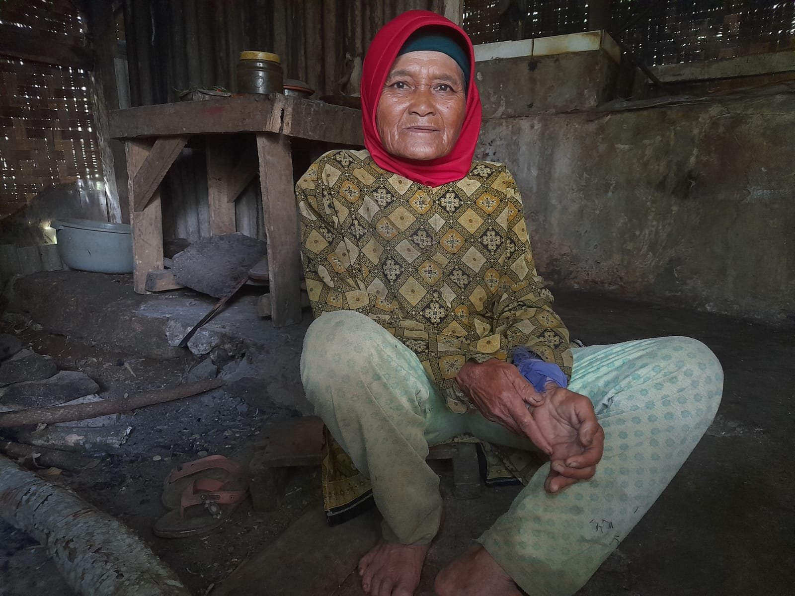 Namun kini, pekerjaan itu terasa mustahil untuk dikerjakan. Tangan kirinya patah karena terjatuh saat memetik teh. Dalam kondisi fisik yang sudah renta, Mak Epoy tak lagi mampu menahan beban gendongan hasil petikannya. Karena tak punya biaya untuk berobat, ia hanya mengandalkan tukang pijat tradisional. Kini, tangannya membengkak, dan rasa sakit terus mengganggu hari-harinya.