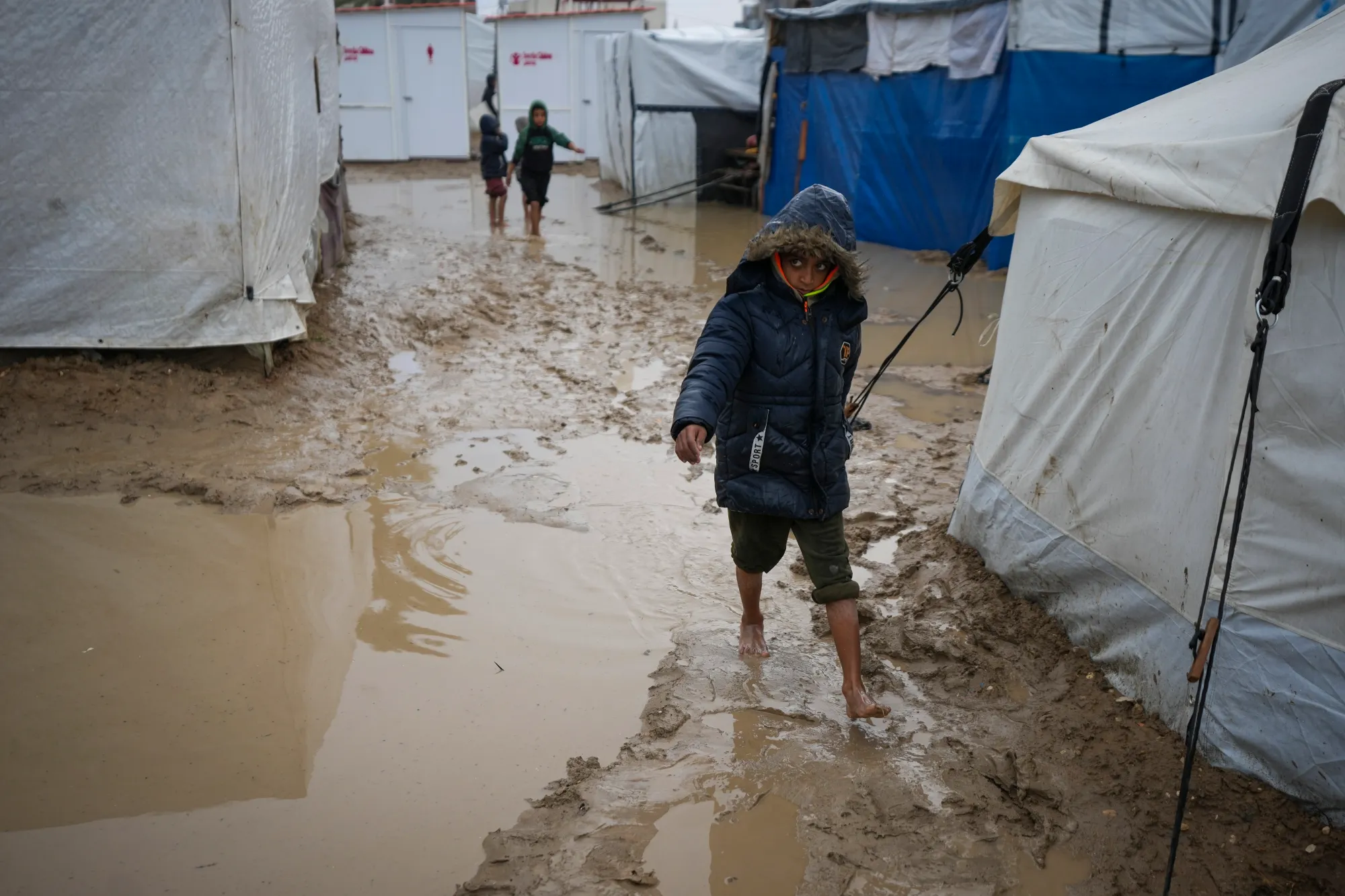 Media internasional mengabarkan kondisi krisis yang terjadi Gaza! Tenda-tenda nyaris hanyut terbawa aurs dari hujan yang tak berhenti semalaman. Padahal, di dalamnya terdapat bayi-bayi yang tengah meringkuk menahan dingin yang menusuk.
